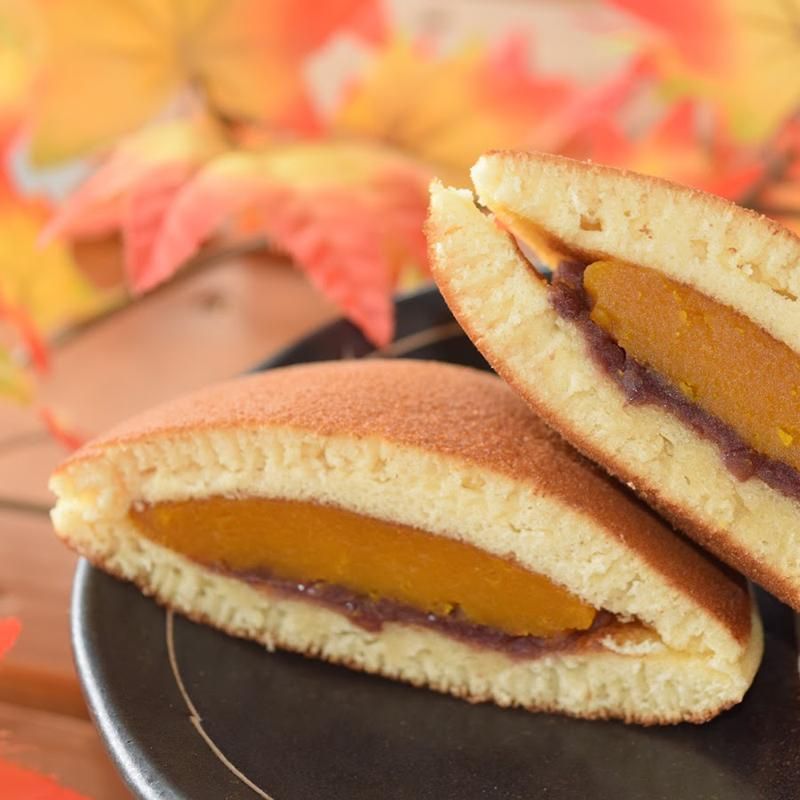 9/13より発送ふわふわのどら皮の中には、自慢の粒餡と濃厚なかぼちゃ餡をたっぷりと挟みました。